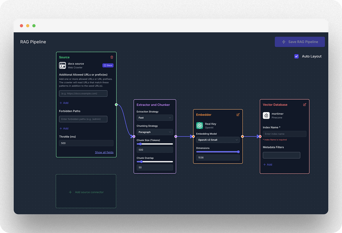 Integrate with Vectorize and you can ingest data from documents, knowledge bases, and SaaS platforms your customers use.